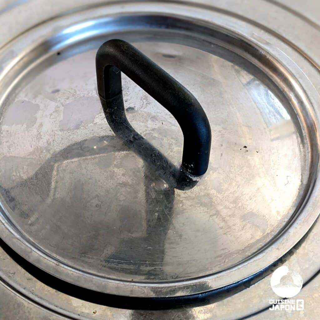 - Puis versez l'eau (pour la quantité d'eau pour la cuisson il faut mettre un fond d'eau qui recouvre un tiers en hauteur de vos oyakis) et couvrir.