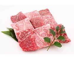Vous remarquerez que la viande proposée est persillée de couleur blanche. À première vue, elle pourra vous sembler très grasse, vous en trouverez même entouré d’une couenne épaisse. Mais détrompez vous, c’est une viande pas du tout élastique et « veineuse » comme on pourrait l’imaginer, mais à l’inverse très tendre et goûteuse avec une texture proche du beurre parfois. La viande fond littéralement en bouche. Plus elle sera persillée, meilleure elle sera.